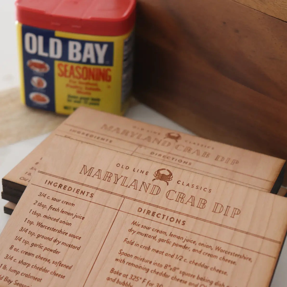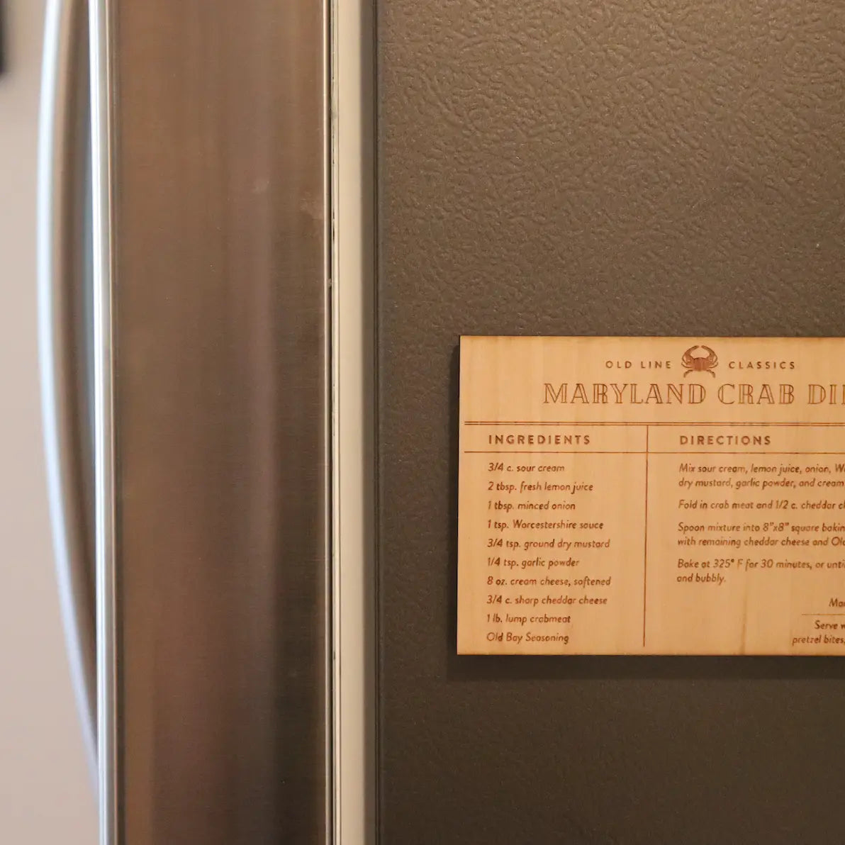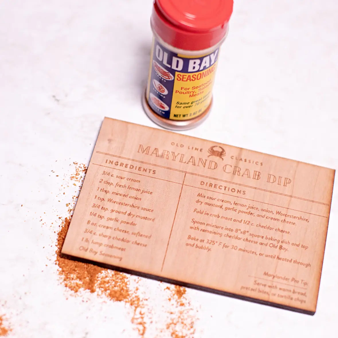 This crab dip recipe (complete with old bay, of course!) is the essence of maryland staple foods. Warm, creamy and delicious, it’s sure to please! 4”x6”; engraved on 1/8” thick birch wood