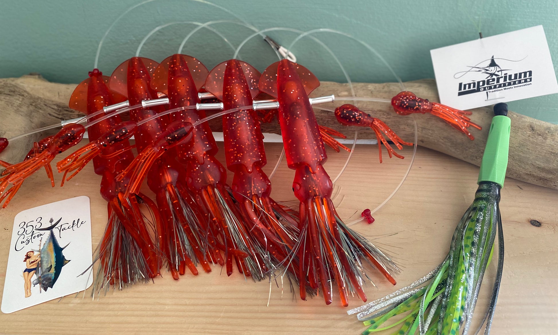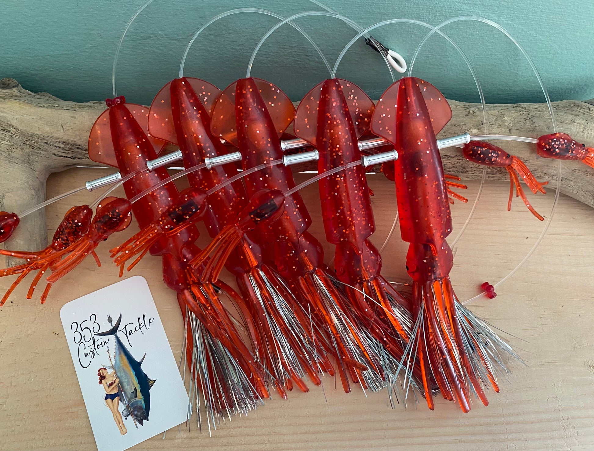 The mini flippy floppy daisy chain is universal so you have the ability to run it as a teaser or whichever hookset works for your boat. The action of the flippy floppy mimics a frenzy of baitfish at the surface.