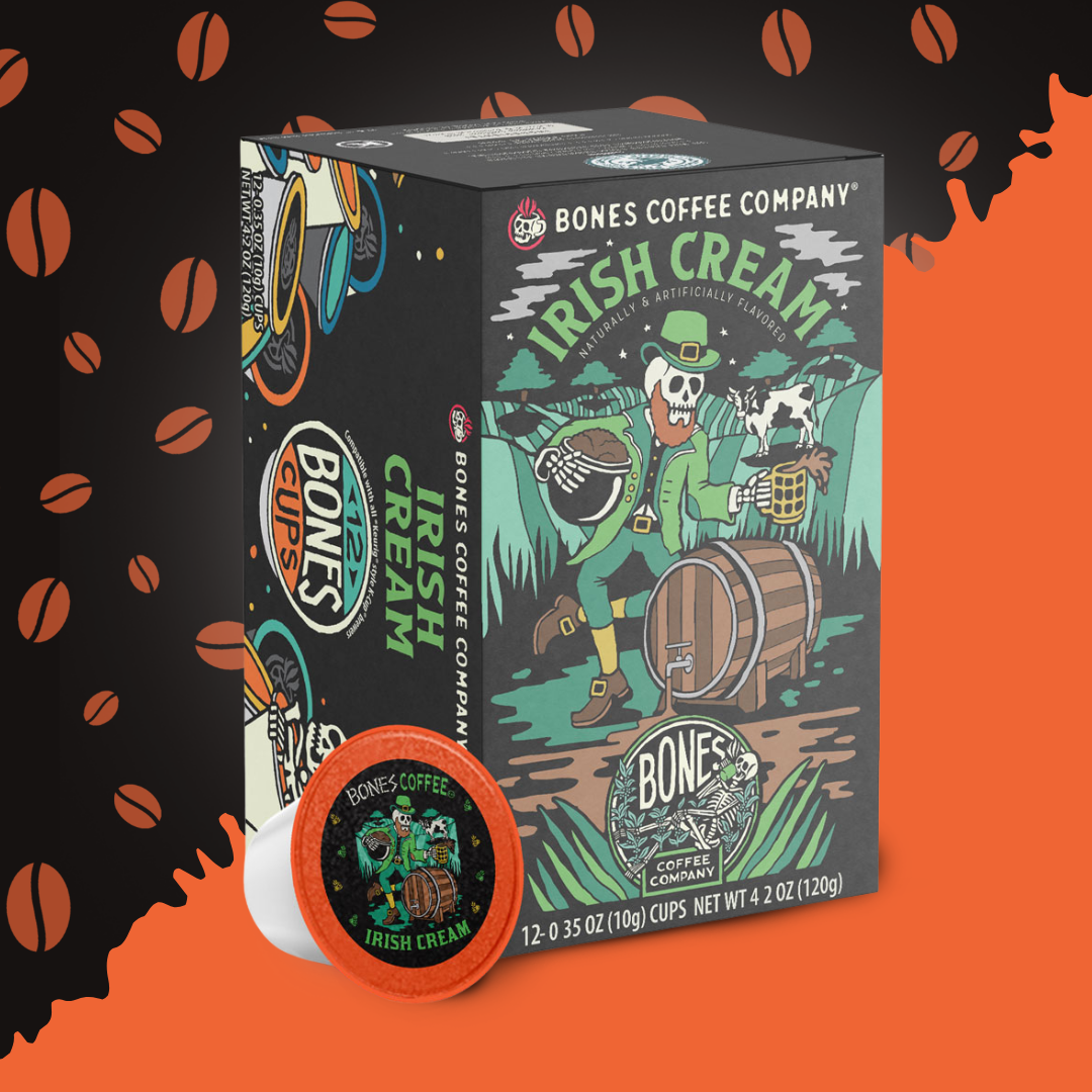 Treat your customers to a delightful dance of flavors with Irish Cream Bones Cups! Immerse them in the creamy, nutty essence of our medium-roast Irish Cream flavored coffee—all the classic taste without the whiskey. This sophisticated blend captures the beloved nutty and creamy Irish cream flavor profile in convenient single-serve pods, transforming every coffee break into a special moment.