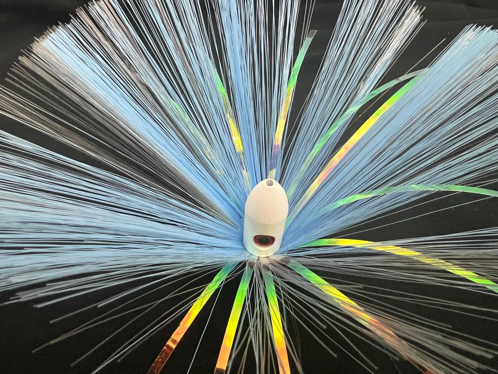 This series is one of the best selling Joe Shute lures. It adds more color and flash to the different size heads and hair that we sell. The squid skirt on the back of the lure mimics a squid swimming thru the water which is one of the tunas favorite foods. The added skirt gives the lure tons of extra action.