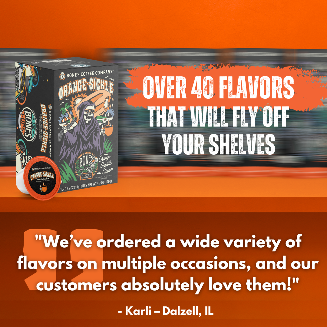 Offer convenient, single-serve coffee with Bones Cups! Give your customers the convenience they crave with single-serve coffee that's bold, flavorful, and perfect for any time of day.